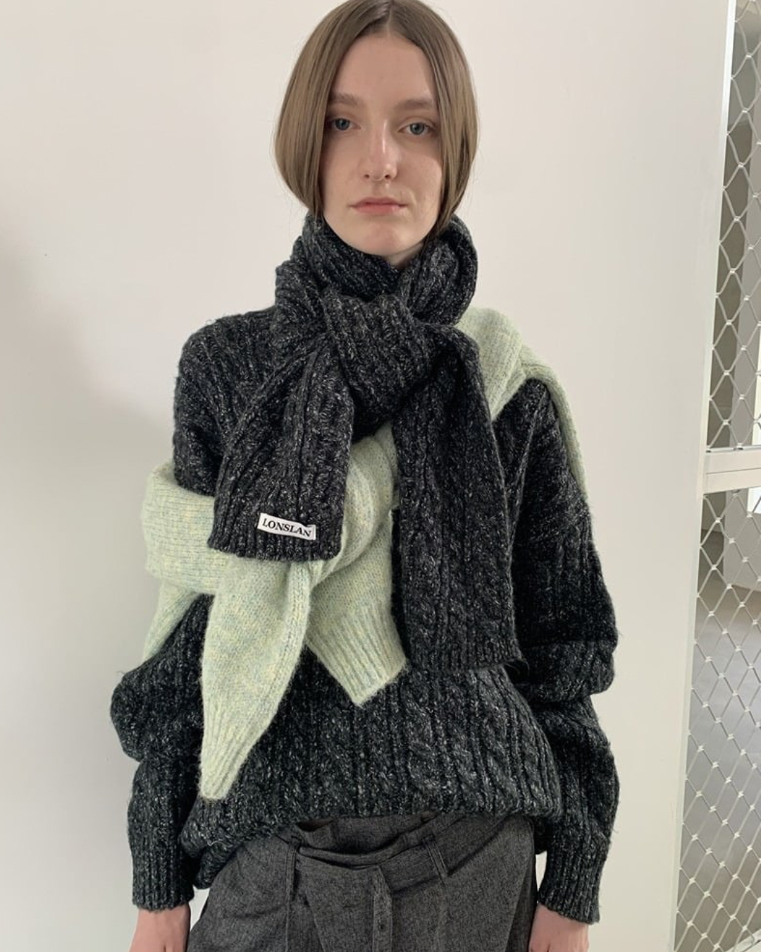 ■サイズ(cm) S:着丈67 肩幅ドロップショルダー バスト126 袖丈72M:着丈69 肩幅ドロップショルダー バスト128 袖丈74L:着丈71 肩幅ドロップショルダー バスト132 袖丈76 ■素材 ポリエステル72% ナイロン10% ポリウレタン1% ウール7% アクリル10% model:175