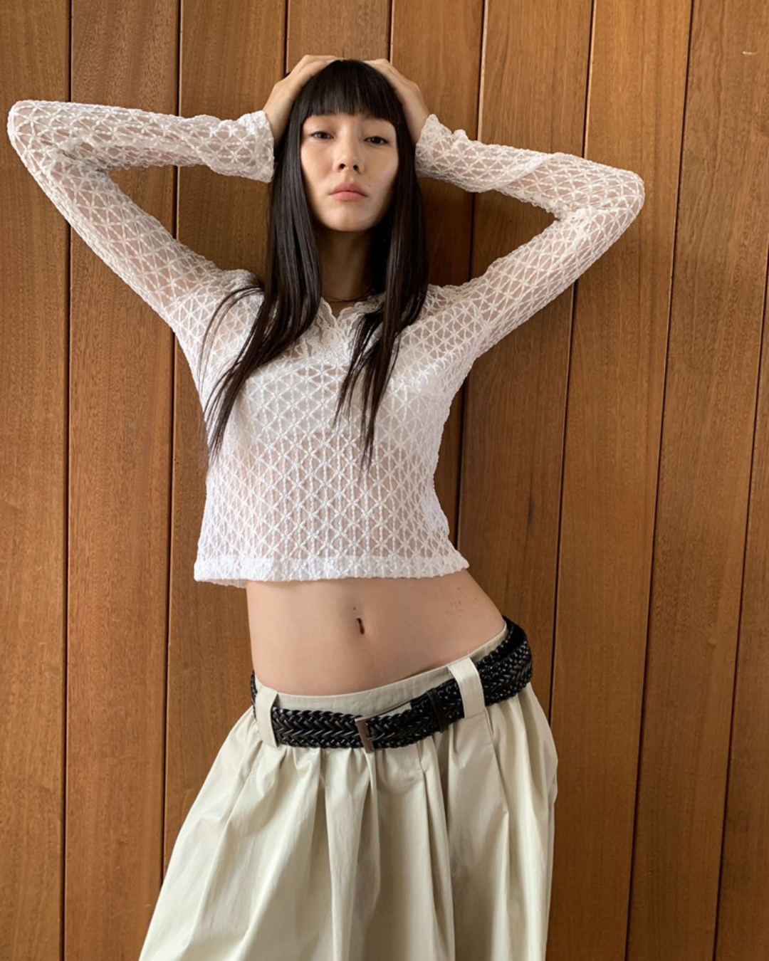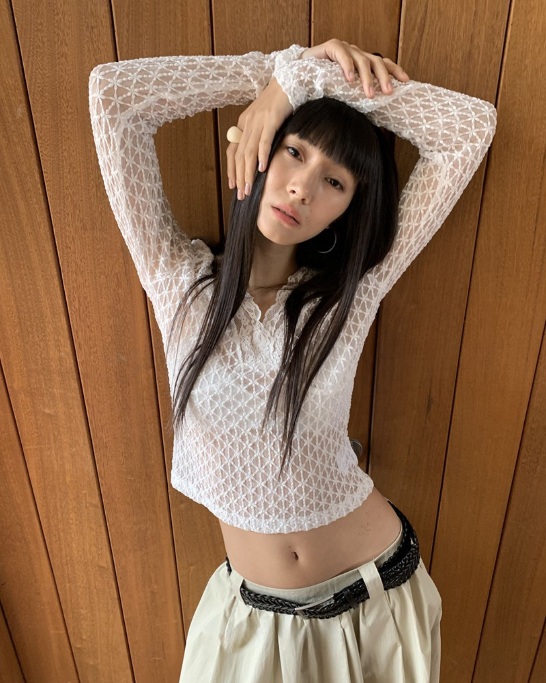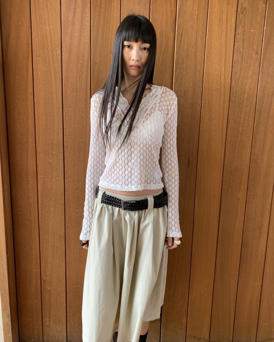 Sheer V-Neck Long Sleeve Top