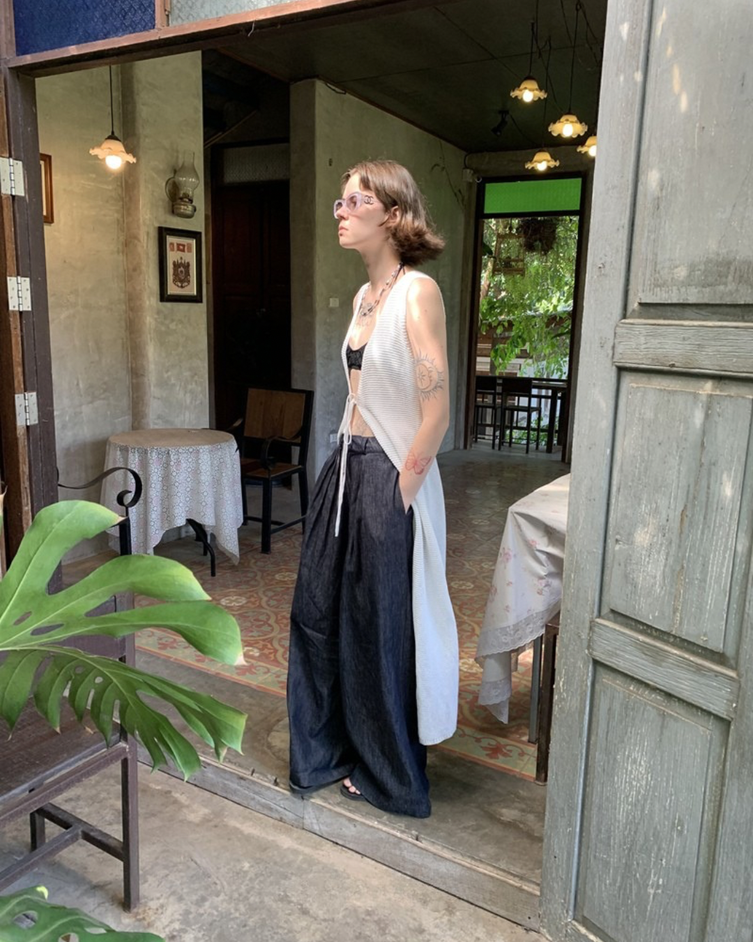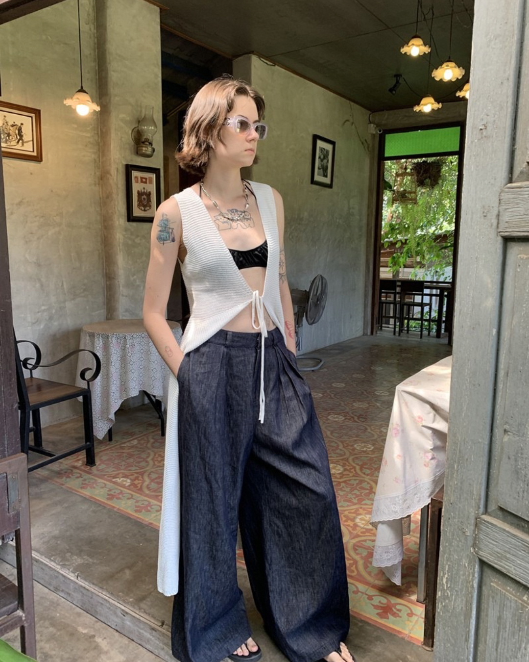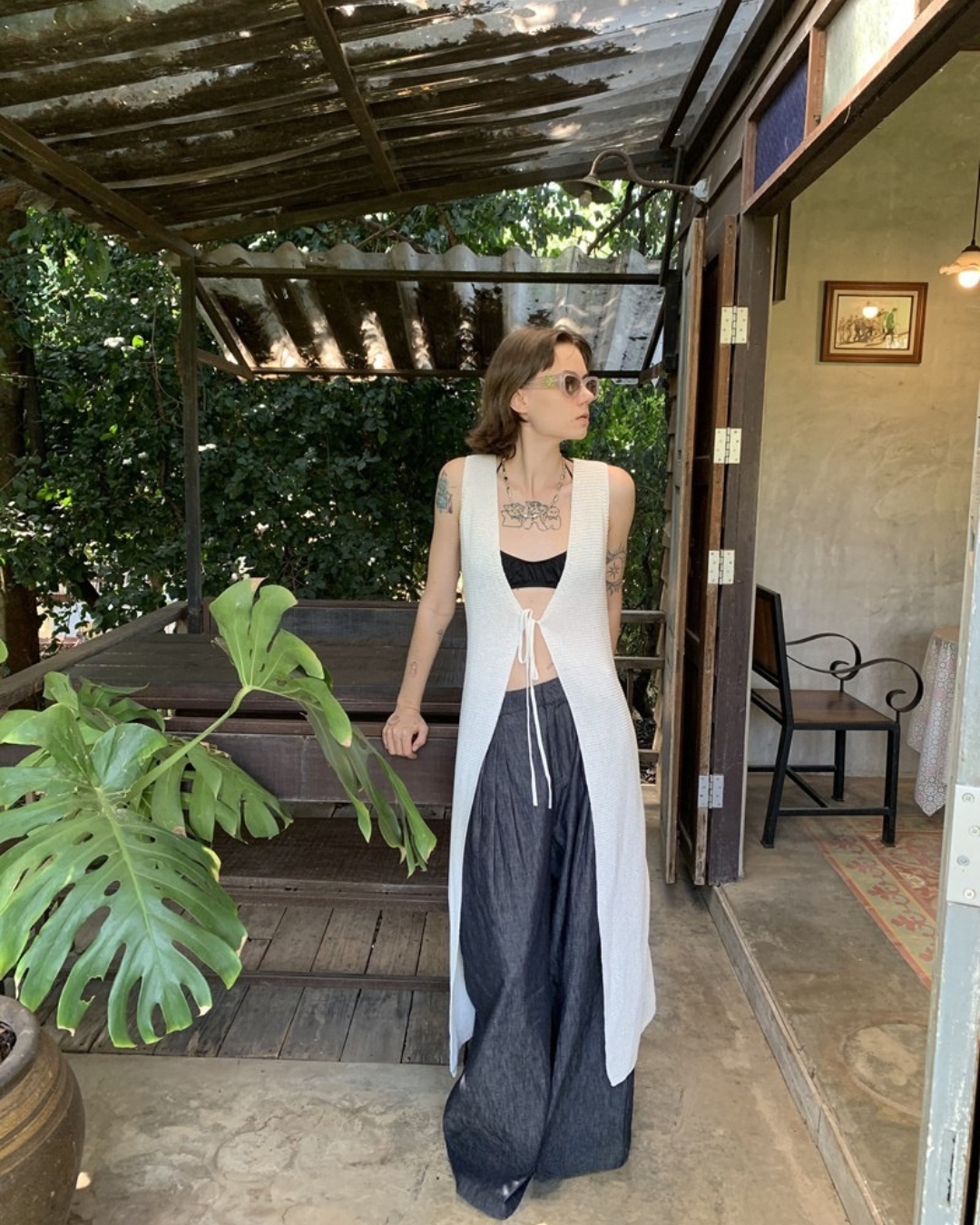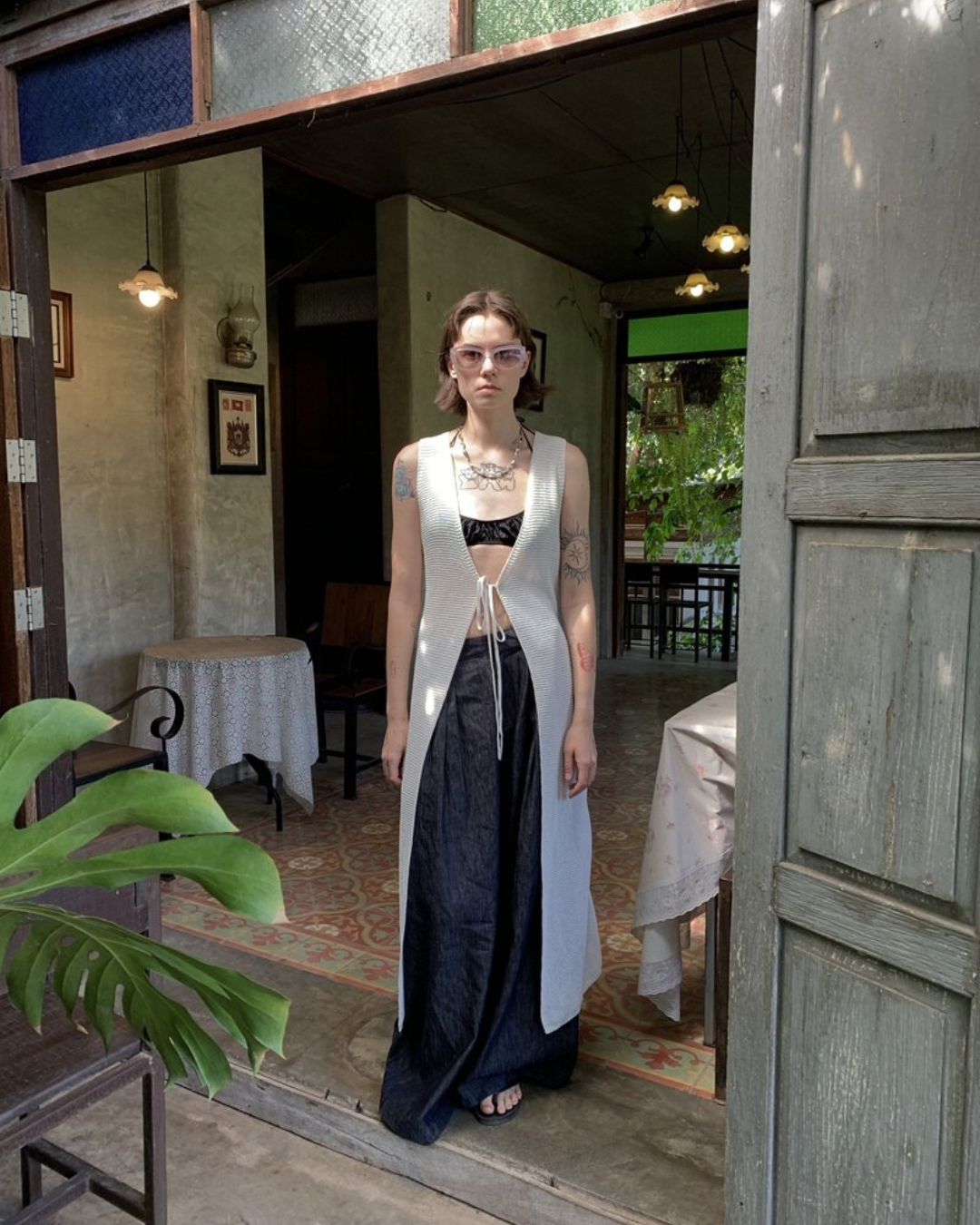Lace-Up Sleeve Knit Vest Cardigan