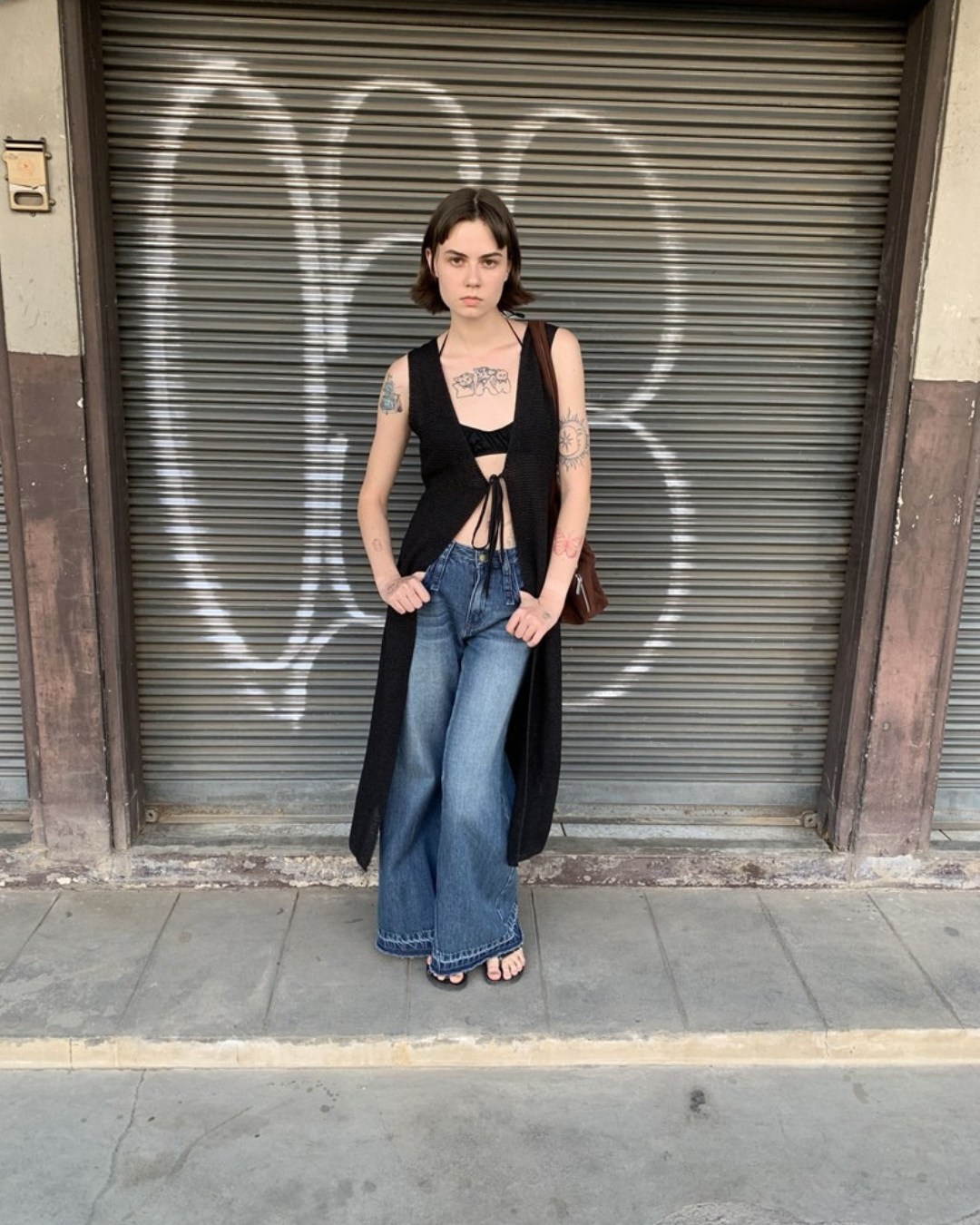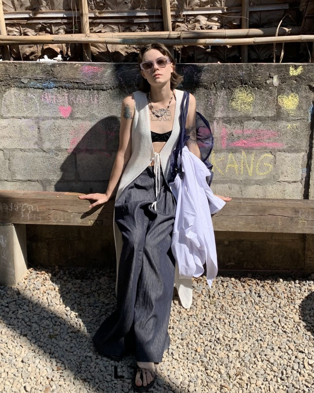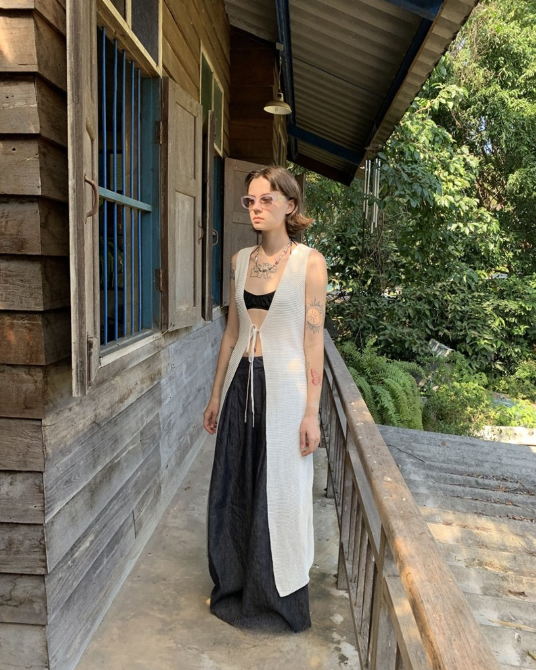 Lace-Up Sleeve Knit Vest Cardigan