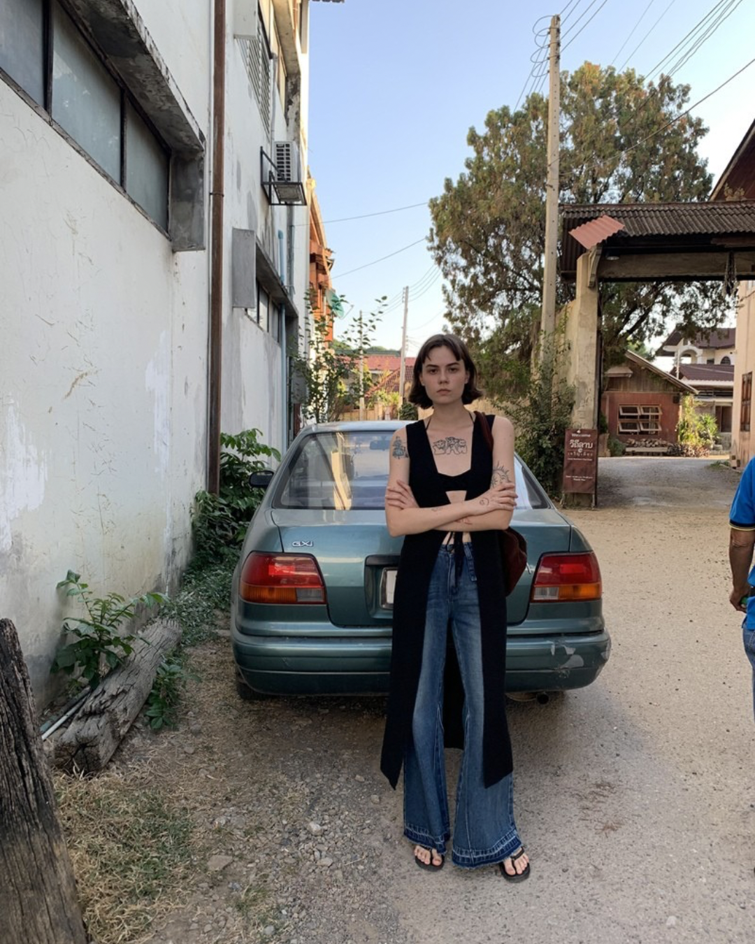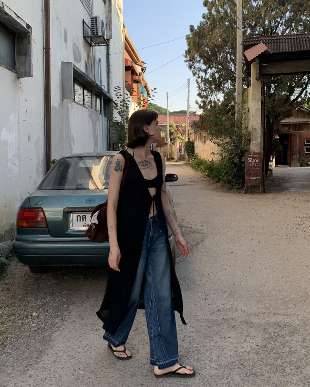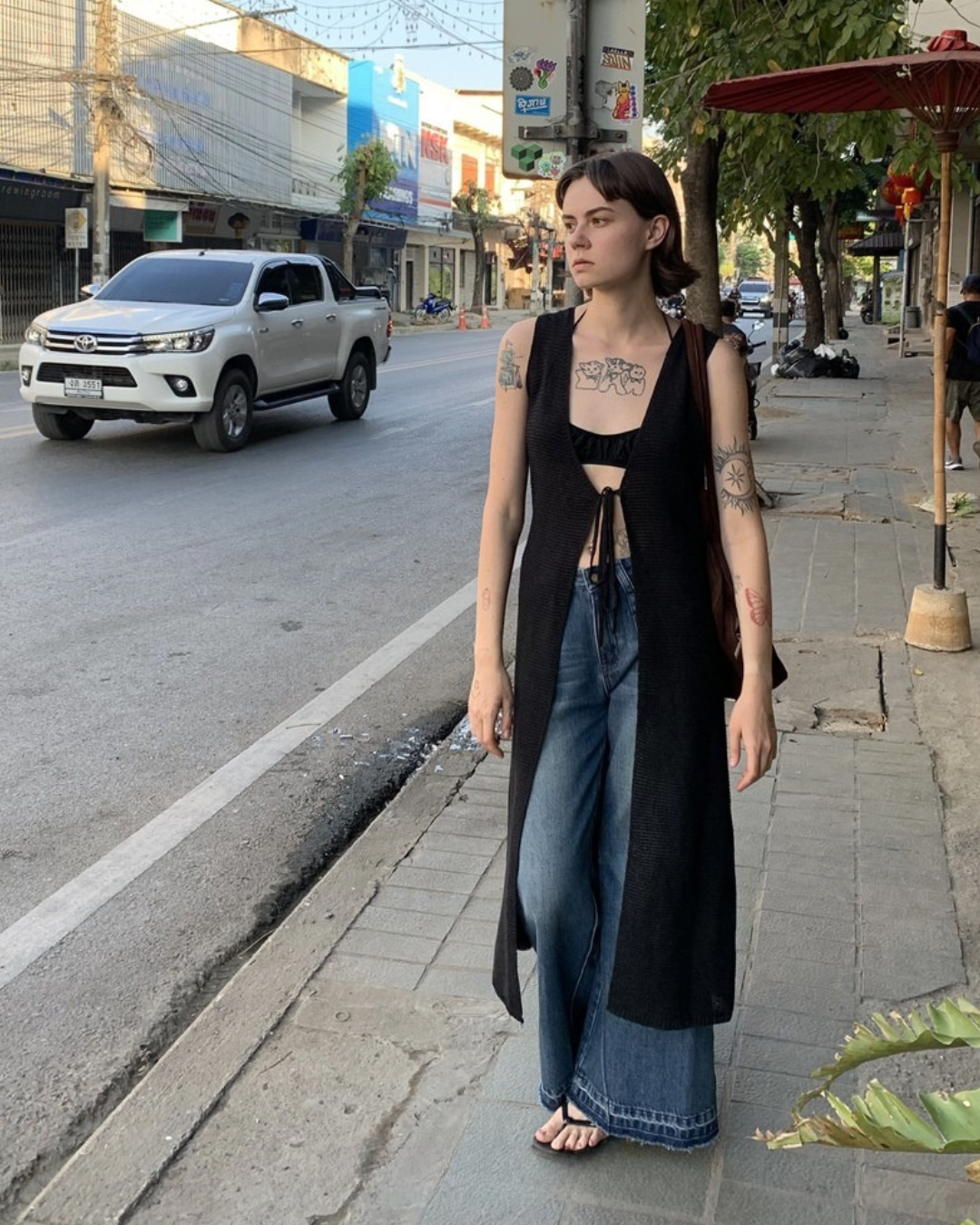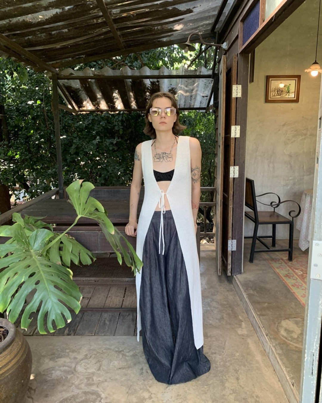 Lace-Up Sleeve Knit Vest Cardigan